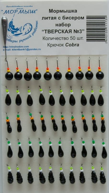 Набор мормышек литых с бисером (черный) "Тверская № 3" уп.50шт