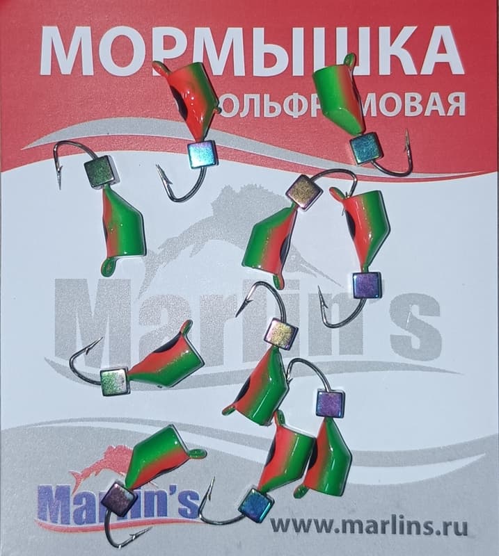 Мормышка вольфрам "Marlin's" Гвоздекубик зел/кр + "бензин" 4мм 1.50гр арт:7240-231 уп.10шт