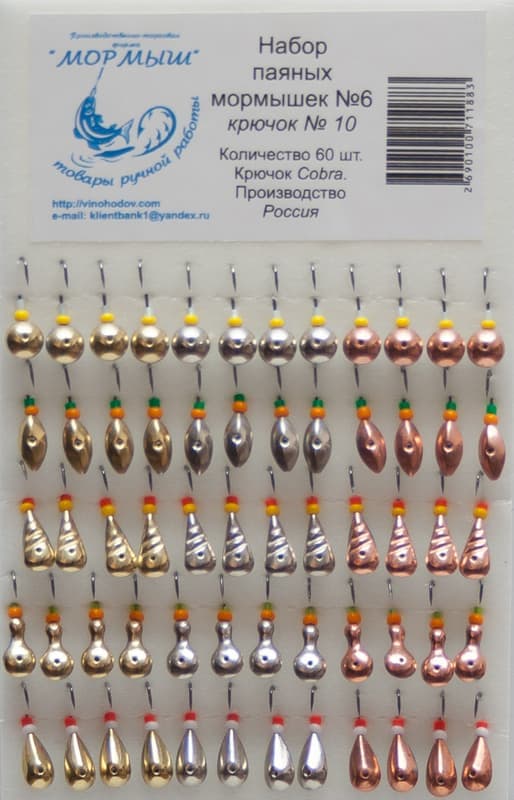 Набор паянных мормышек № 6 (латунь/никель/медь) уп.60шт
